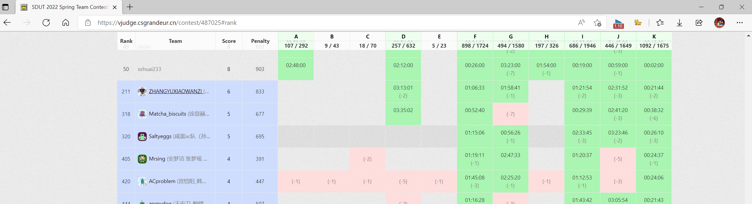 18:30到22:30共四小时的比赛,过程还是很欢乐的,其中两道签到题(I – Budget & J – Worker )由我贡献了五次罚时Orz,其他较难的题目全靠队友输出。